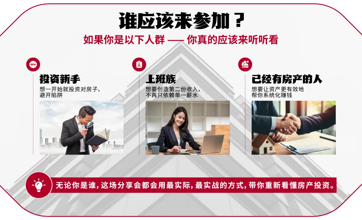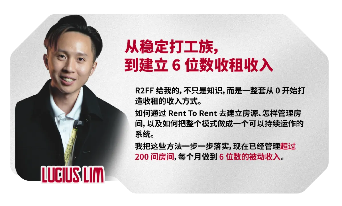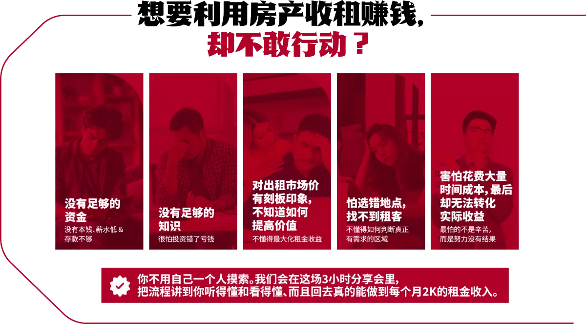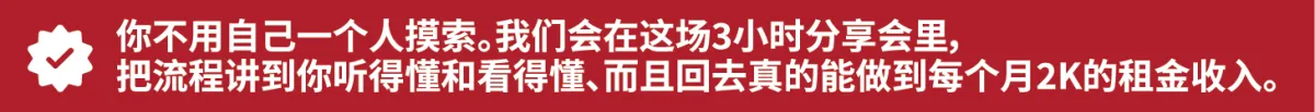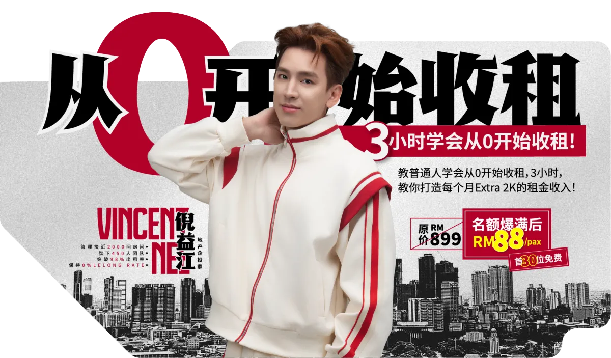 我们会 A to Z 仔细地分享每一个步骤,包括如何提高至少20%出租率,回酬率等。