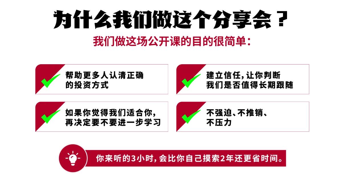 有的。如果你在过去投资没有清晰的系统、规划策略常常靠感觉、那这个线下分享会可以帮你打通底层结构、最大化你现有的资源。
